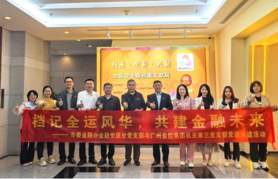 为深入学习党的二十届四中全会精神,深刻领会全运会等重大活动对城市发展的深远影响,充分展现国家重大任务成功举办所体现的制度优势和组织力量,11月5日下午,市委金融办金融党建处党支部与广州金控集团机关第三党支部联合开展了“档记全运风华共建金融未来”主题党建共建活动,共同前往广东省档案馆参观“传承·创新·共融——全运会主题档案文献展”。市委金融工委专职副书记汤汉忠同志、市委金融办一级调研员(市管干部)王德昌同志、广州金控集团党委副书记马智彬同志以普通党员身份参加活动。